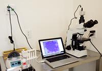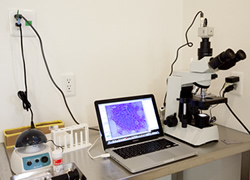 OSIRIXというアプリケーションソフトを用いて、すべての画像をコンピューター管理しています。これによって顕微鏡の画像などもパソコン画面上に映し出すことができるので、飼い主様に直接見ていただき、分かりやすく説明すること可能になりました。