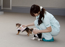 病院に慣れていない子は、怖くてストレスを感じてしまう場合があります。日ごろから当院とコミュニケーションをとっていただけると、「もしも」という時に動物自身への負担が少なく、その時々で最良の処置をすることができます。しかしながら、やはり病院という場所は動物たちにとって苦手な場所です。当院では、診察が終わった後に数粒のおやつをあげたりするなど、(体調を崩している子や、アレルギー体質の子にはあげられませんが)動物たちが、「嫌なことだけじゃなくていいこともある場所」と感じてくれるよう努めています。